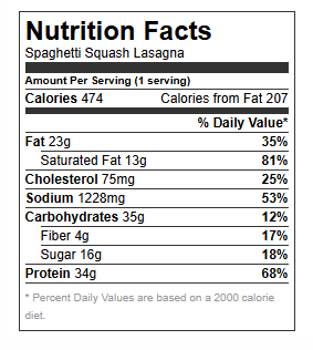 This Lasagna is made with all-natural marinara, part-skim ricotta cheese, grated Parmesan cheese, and healthy spaghetti squash.